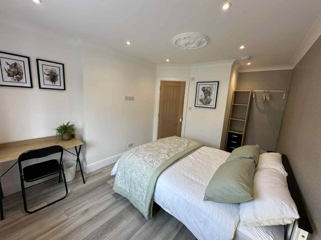 This newly renovated property has 3 double bed bedrooms and one single bed bedroom each with its own ensuite shower room. Each room has space to hang clothing, a desk to work at, a plug socket that has a USB and USB C point. The mattresses are super comfortable for a great night sleep and hotel quality bedding and pillows.