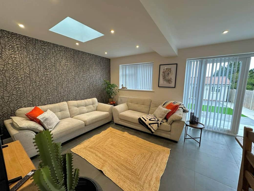 ➞ The space offers a comfortable, bright, relaxing living area which is perfect for hanging out and relaxing on the sofas watching your favourite TV shows or enjoying a meal at the dining table.