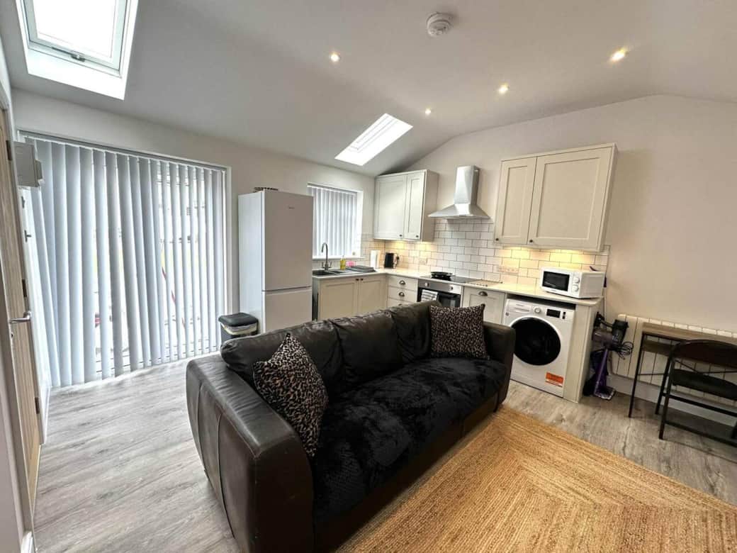 The annexe is open plan and has a large comfortable sofa, 50" smart tv, wifi , didicated work table. To the side you will find the bedroom area with a very comfortable double bed & clothes storage.